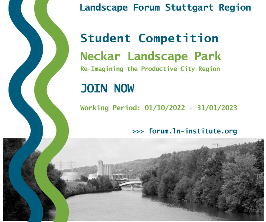 Studierende aller raumbezogenen Disziplinen sind eingeladen, Zukunftsbilder für die Neckarlandschaft zwischen Nürtingen und Altbach zu gestalten. Der internationale Wettbewerb „LandscapePark Neckar – Re-imagining the Productive City Region“ orientiert sich an dem Leitthema der IBA’27 StadtRegion Stuttgart. Bearbeitungszeit ist von 1. Oktober 2022 bis zum 31. Januar 2023.