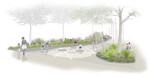 Im freiraumplanerischen Realisierungswettbewerb mit Ideenteil siegte der Entwurf der BHM Planungsgesellschaft aus Bruchsal: Barrierefrei und großzügig in der Gestaltung, integriert der Beitrag das vorhandene Grün in die Planung und schafft Grüninseln, die ins Regenwassermanagement des Platzes eingebunden sind.